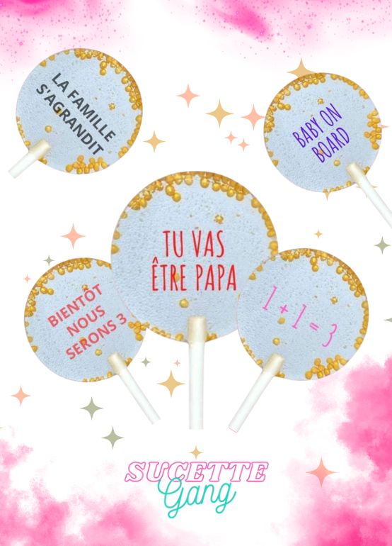- Une surprise conviviale : Parfaites pour animer une baby shower, un baptême ou une fête de famille, ces sucettes créent un moment de complicité autour de l’arrivée de bébé.