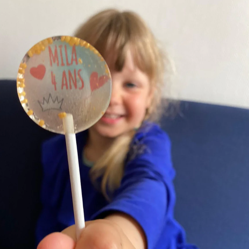 Oui, tu peux ajouter une image, un logo ou un texte sur ta sucette grâce à notre outil de personnalisation en ligne.